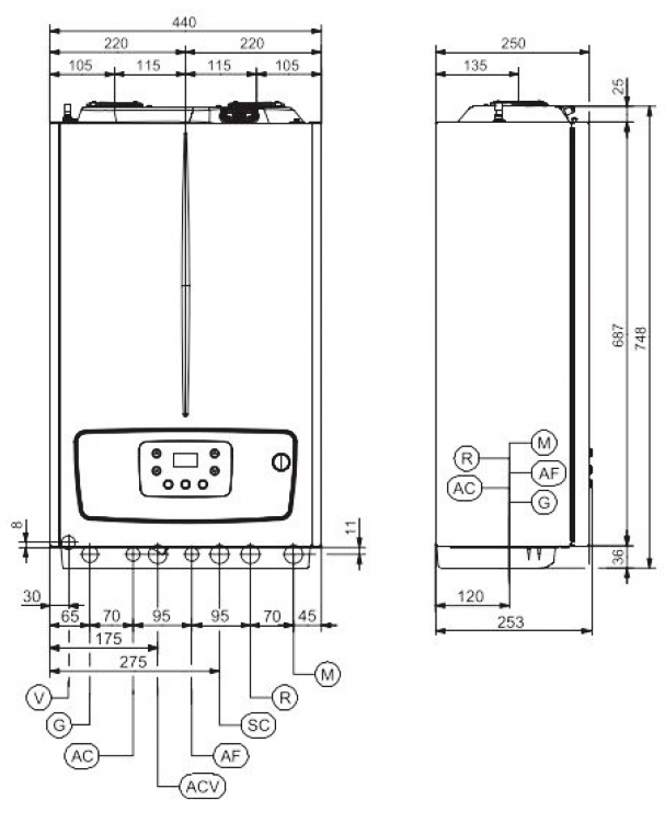 Dujinio kondensacinio katilo IMMERGAS VICTRIX TERA 1 matmenys