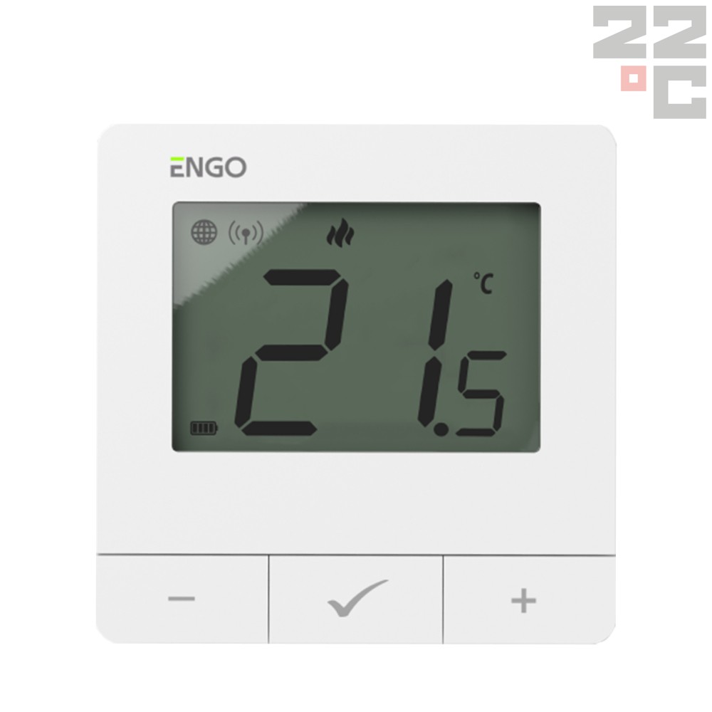 ENGO E20i-W – tai išmanus belaidis kambario termostatas, valdantis šildymo ar vėsinimo sistemą per Wi-Fi tinklą. Jis gali veikti tiek prisijungęs prie interneto, tiek neprisijungus (offline režimu). Termostatas valdomas per ENGO Smart programėlę, veikiančią Tuya Cloud technologijos pagrindu, todėl nereikia papildomo gateway įrenginio. Komplekte yra stovas, leidžiantis termostatą pastatyti ant lentynos, o integruotas Alexa ir Google Home balso valdymas suteikia papildomo patogumo.