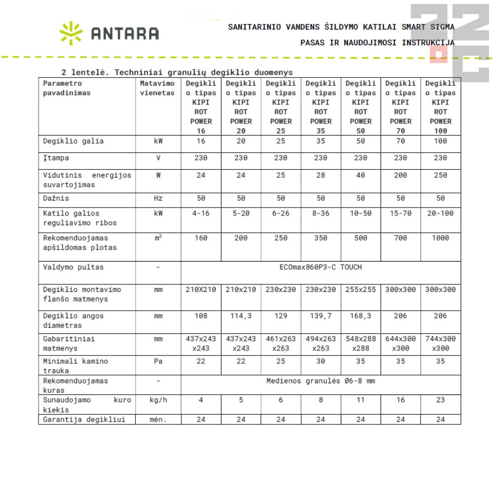 Granulinis katilas ANTARA Smart Sigma 100 N