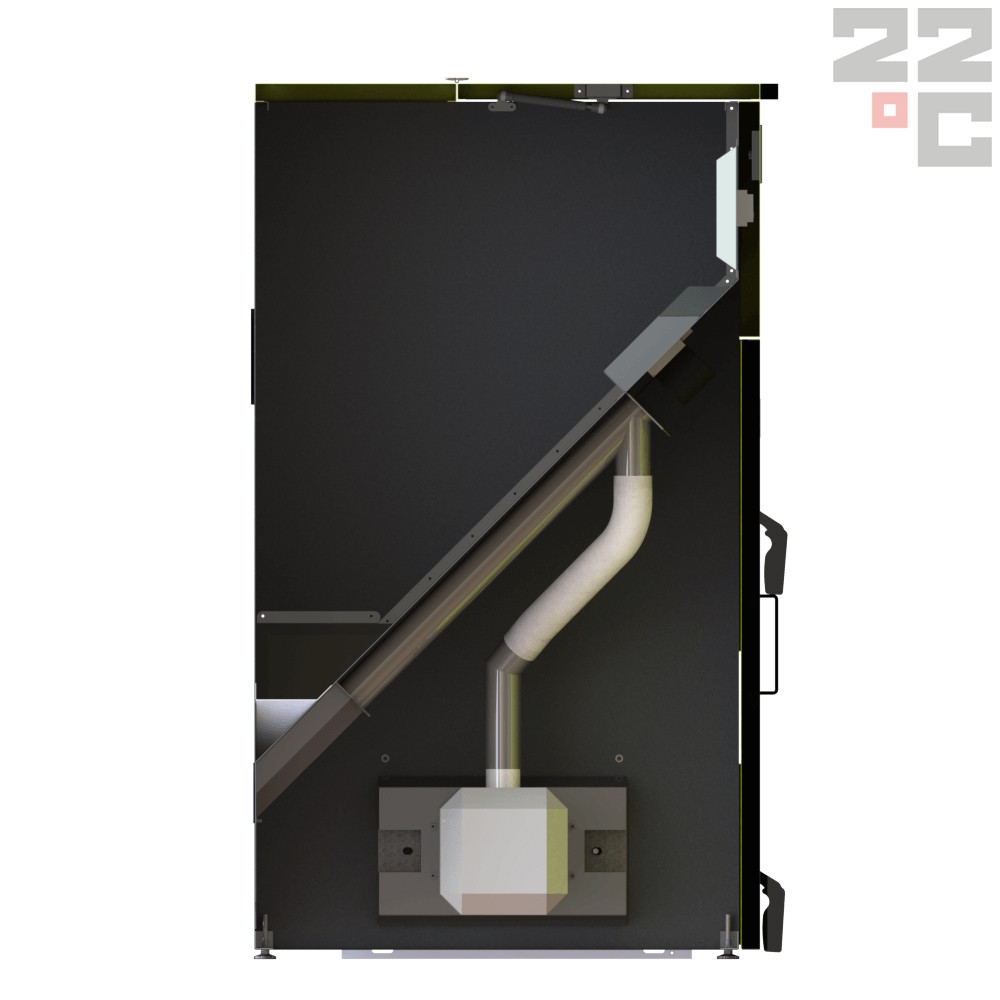 - Universalus montavimas: Bunkerį galima montuoti tiek kairėje, tiek dešinėje pusėje, todėl katilas lengvai pritaikomas bet kurioje katilinėje.