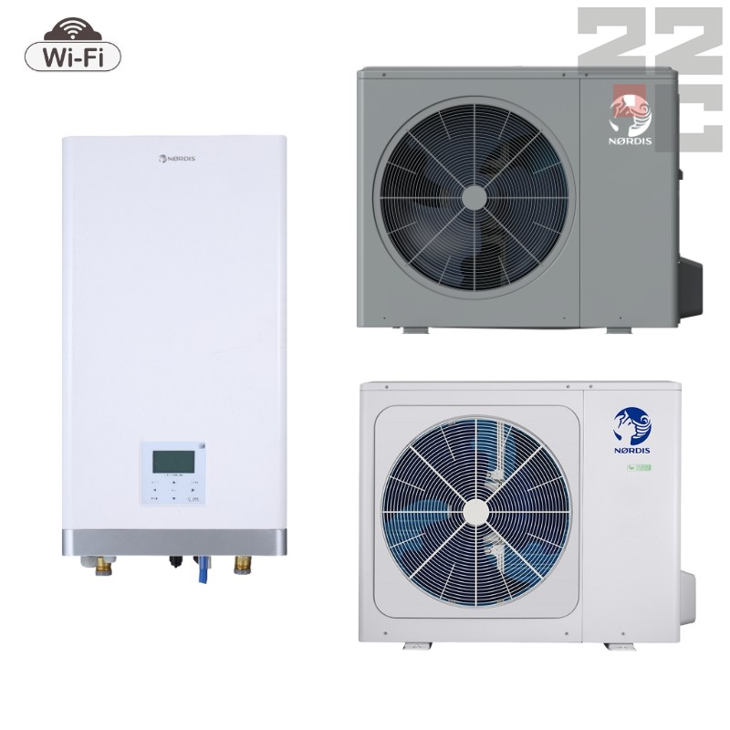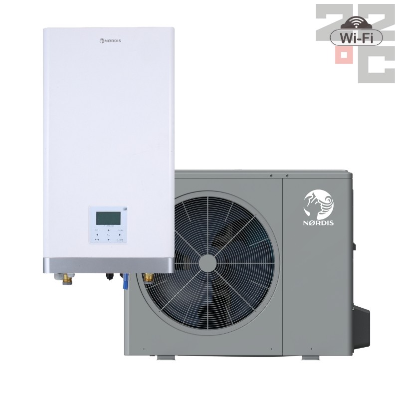 NØRDIS Optimus Pro Split oras-vanduo šilumos siurbliai (A+++) šildo patalpas iki -25°C (naudojant R-32). Tai DC Inverter tipo, efektyvūs įrenginiai be integruotos karšto vandens talpos, lengvai integruojami ir valdomi per Wi-Fi.