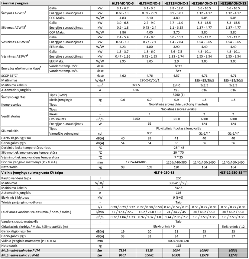 | Momentinio šildymo naudingumo koeficientas COP (A-7℃, W 35℃) | 4.00 | 4.86 | 4.80 | 4.00 | 4.00 |
